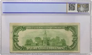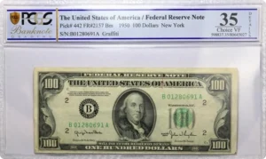 Billet de 100 dollars des Etats-Unis type « Federal Reserve Note »1950 B New Yorknuméro de série : B01280691AGrade PCGS : Choice VF35Mention de graffiti