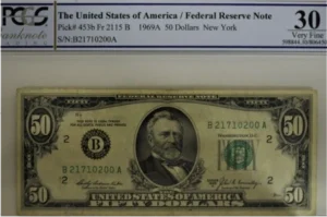 Billet de 50 dollars B21710200A – New York.Série 1969 ASous étui PCGS.