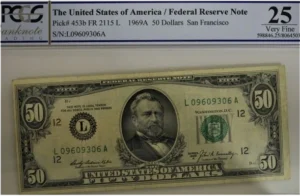 Billet de 50 dollars L09609306A San FranciscoSérie 1969 A. Sous étui PCGS.