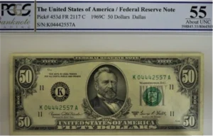 Billet de 50 dollars K04442557A Dallas. Série 1969 C.Sous étui PCGS.