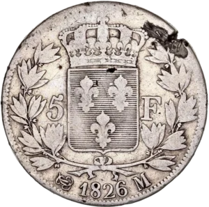 Lot composé de 3 monnaies en argent :- 5 francs Napoléon Ier 1813 A (Paris).- 5 francs Louis XVIII 1824 L (Bayonne).- 5 francs Charles X 1826 M (Toulouse).