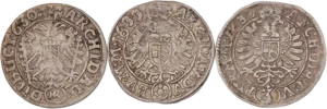 Saint Empire Romain Germanique (Maison Habsbourg).Lot de 3Kreuzer (groschen) Ferdinand II.Atelier et millésime différents :*Prague*Kuttenberg*Breslau