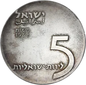 Lot composé de :- 5 lirot 10ème anniversaire de l’indépendance 1958 (KM. 21)34mm. – 25 grammes – 900 ‰- 5 lirot 11ème anniversaire de l’indépendance 1959 (KM. 23)34mm. – 25 grammes – 900 ‰
