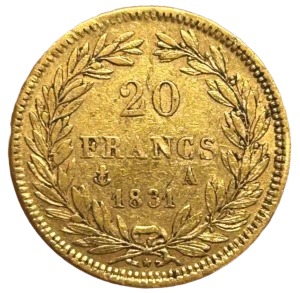 L'inscription 20 francs 1831 A entouré d'une couronne de laurier.
