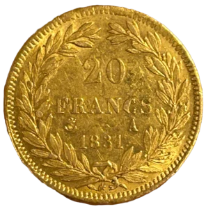 L'inscription 20 francs 1831 A entouré d'une couronne de laurier.