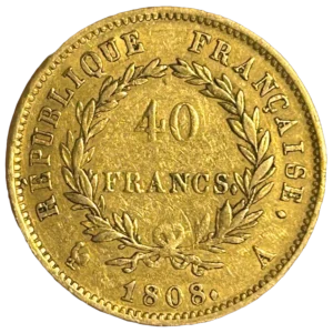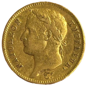La pièce est d’un aspect médiocre, on arrive tout juste à distinguer le type. Il s’agit d’une pièce qui a beaucoup circulé. Dans le cas des pièces d’or, ces pièces s’achètent au poids.