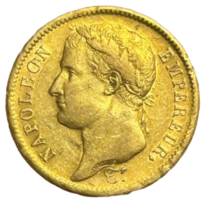 Tête laurée de Napoléon Ier à gauche.