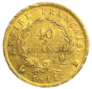 L'inscription 40 francs dans une couronne de laurier.