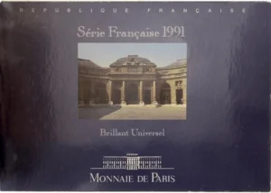 Coffret Monnaie de Paris « brillant universel » 1991.Coffret rare (2500 exemplaires) contenant les rares monnaies de 1 centime et 2 francs.