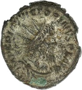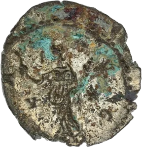 Lot de deux monnaies romaines de type antinomie (IIIème siècle).1 antoninien de l’empereur Gallien – revers à la victoire éternelle (3,00gr – 21mm).1 antoninien de l’empereur « Gaulois » Victorin – revers à la Paix (2,84gr. – 19mm).