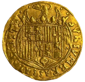 La pièce est d’un aspect médiocre, on arrive tout juste à distinguer le type. Il s’agit d’une pièce qui a beaucoup circulé. Dans le cas des pièces d’or, ces pièces s’achètent au poids.