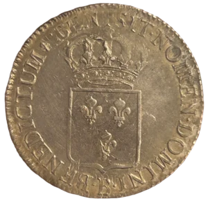 La pièce est d’un aspect médiocre, on arrive tout juste à distinguer le type. Il s’agit d’une pièce qui a beaucoup circulé. Dans le cas des pièces d’or, ces pièces s’achètent au poids.