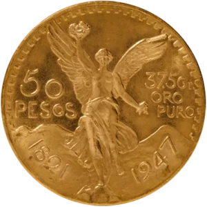 Cette pièce de monnaie mexicaine est frappée pour la première fois en 1921 pour célébrer l’indépendance du pays. Longtemps surnommée le Mini lingot ou la « Centenario », c’est une pièce connue des collectionneurs et des investisseurs.